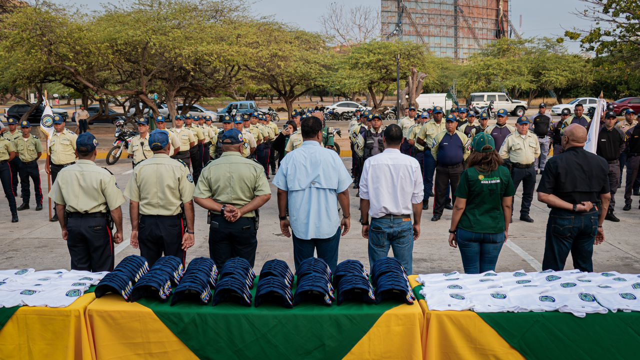 Una dotación de gorras y franelas entregó el alcalde de Maracaibo, Rafael Ramírez Colina, a más de 600 funcionarios del Instutito Autónomo de la Policía Municipal de Maracaibo (Polimaracaibo), en un esfuerzo por apoyar en sus arduos entrenamientos físicos.