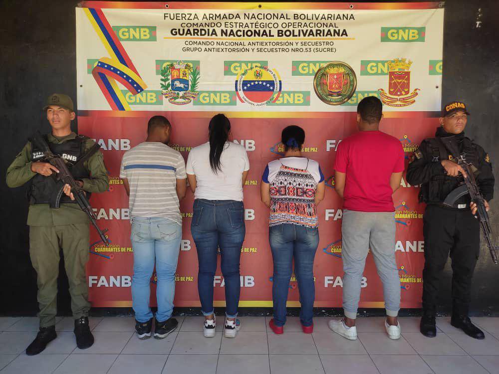 A través de su cuenta en la red social X (antes Twitter) el militar identificó a los aprehendidos como María Fernanda Mundaray Hurtado, Javier Enrique Castillo Romero, Josué Ediomar López Martínez, y Agueda Jilmar Martínez Brito, todos miembros del Grupo Estructurado de Delincuencia Organizada (GEDO) “La Machi”, dedicado a la trata de personas.