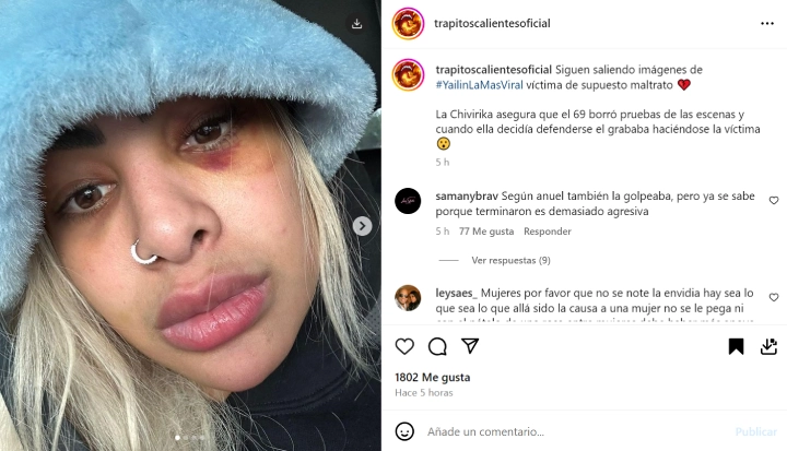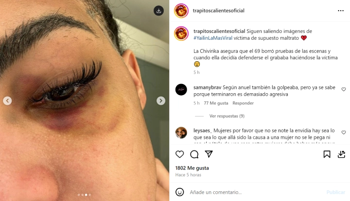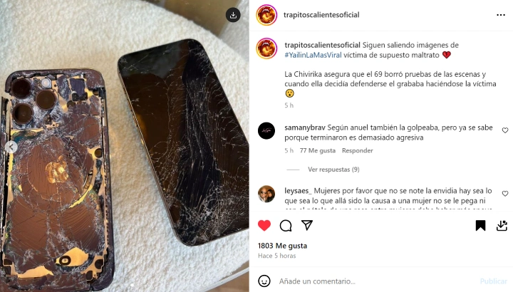 En esta oportunidad, por ejemplo, en la mañana de este viernes 15 de diciembre, se revelaron unas nuevas fotos de Yailin en las que se ve su ojo realmente golpeado, con un gran morado alrededor de él y otra imagen de su celular completamente roto.