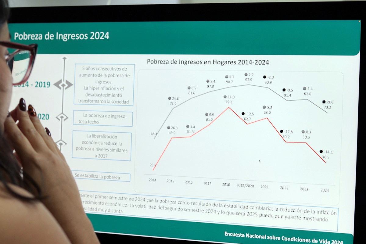 Además, la proporción de hogares en situación de pobreza extrema —aquellos con ingresos insuficientes para cubrir la alimentación— se redujo en 14 puntos porcentuales en un año, bajando de 50,5% a 36,5%. Esto representa 3,4 millones de hogares afectados, 600 mil menos que en 2023.