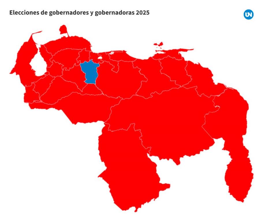 En cuanto a los gobernadores, el Psuv se quedó con 23 de ellas, incluyendo las del Zulia, Nueva Esparta y Barinas, que ocupaban mandatarios de oposición desde 2021. La oposición solo logró mantener el estado Cojedes con Alberto Galíndez.